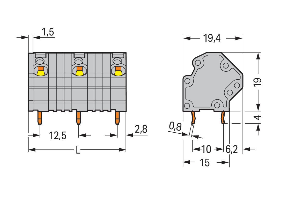 Złączka do płytek drukowanych 4 mm² RM 12,5 mm 12-bieg, szara