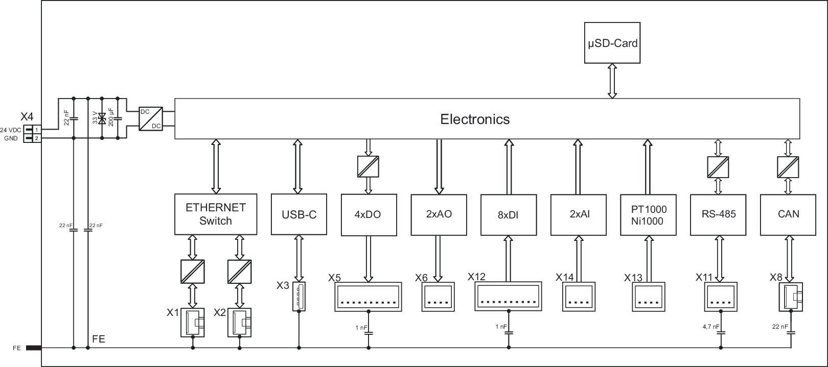 Sterownik kompaktowy CC100 8DI 4DO 2AI 2AO 2NI1K/PT1K 1RS485 2ETH CAN SD