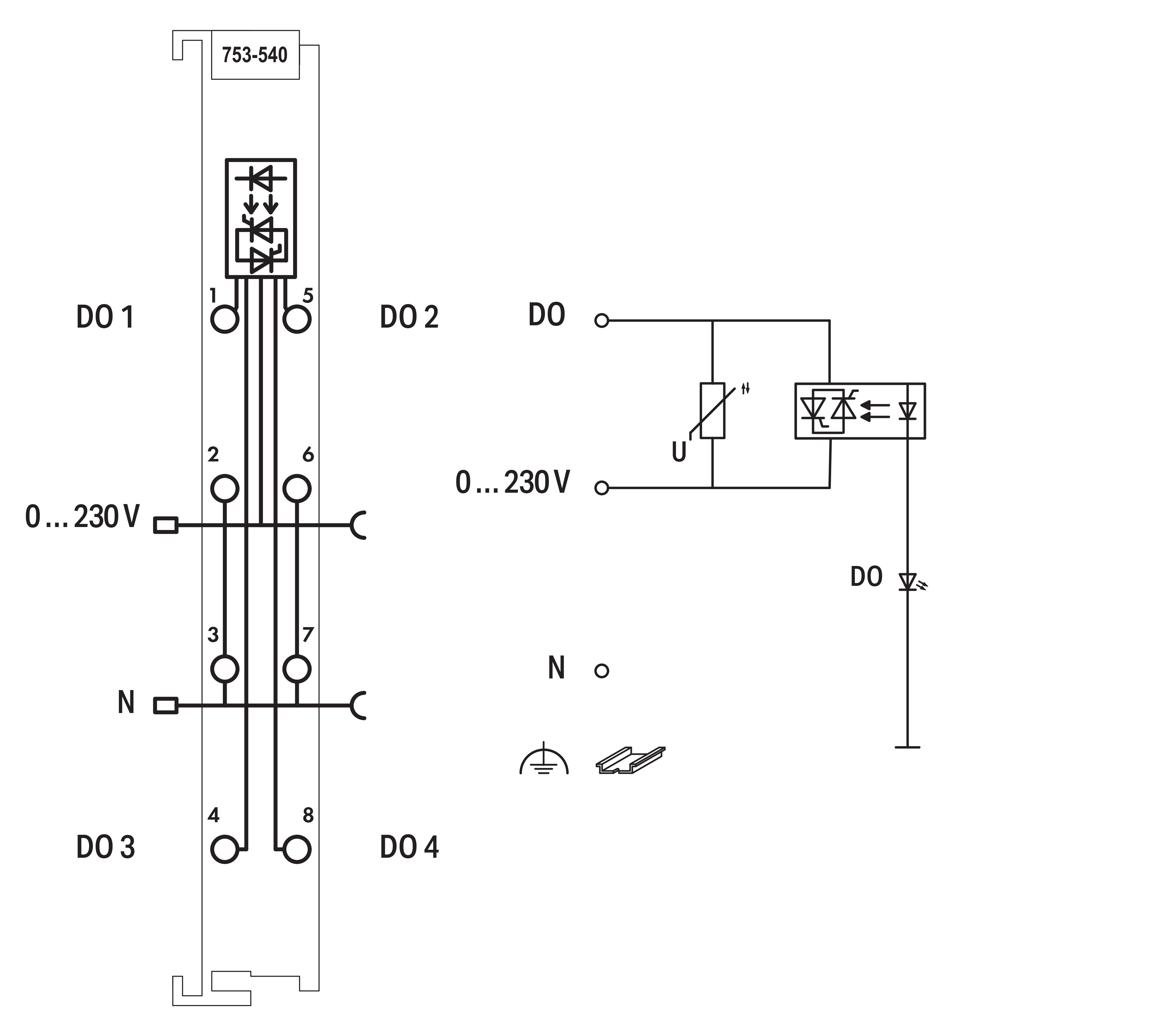 4-kanałowe wyjście dwustanowe; 230 V AC; 0,25 A; półprzewodnikowy