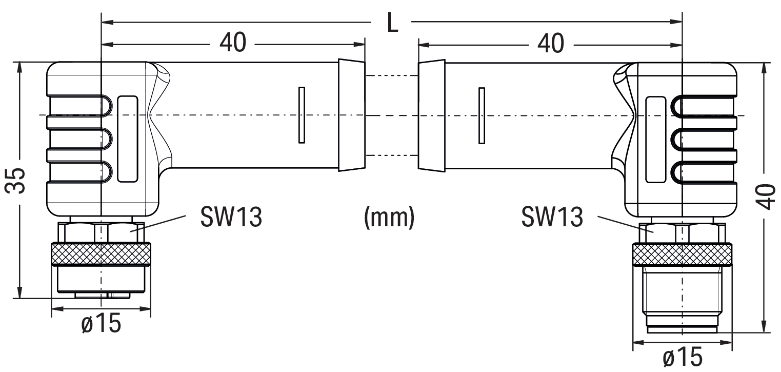 Przewód zasilający; M12L gniazdo kątowe; M12L wtyk kątowy; 5-bieg.; długość 2 m