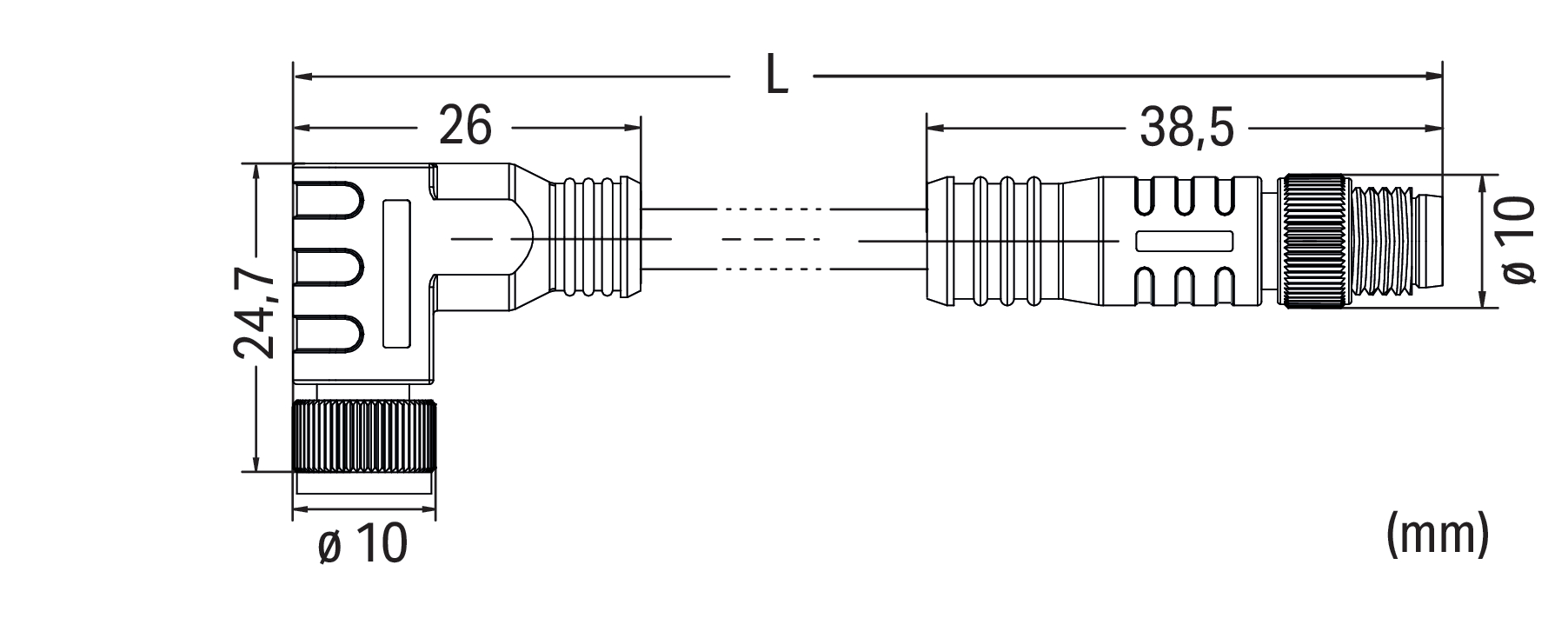 przewód do czujników/elementów wykonawczych; M8 gniazdo kątowe; M8 wtyk prosty; 3-bieg.; długość 0,5 m