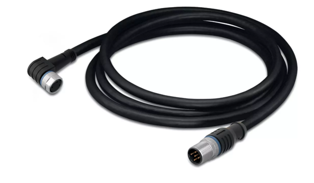 przewód do czujników/elementów wykonawczych; M8 gniazdo kątowe; M12 wtyk prosty; 4-bieg.; długość 0,5 m