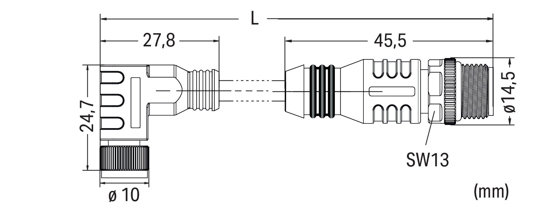 Przewód do czujników/elementów wykonawczych; M8 gniazdo kątowe; M12 wtyk prosty; 4-bieg.; długość 1 m