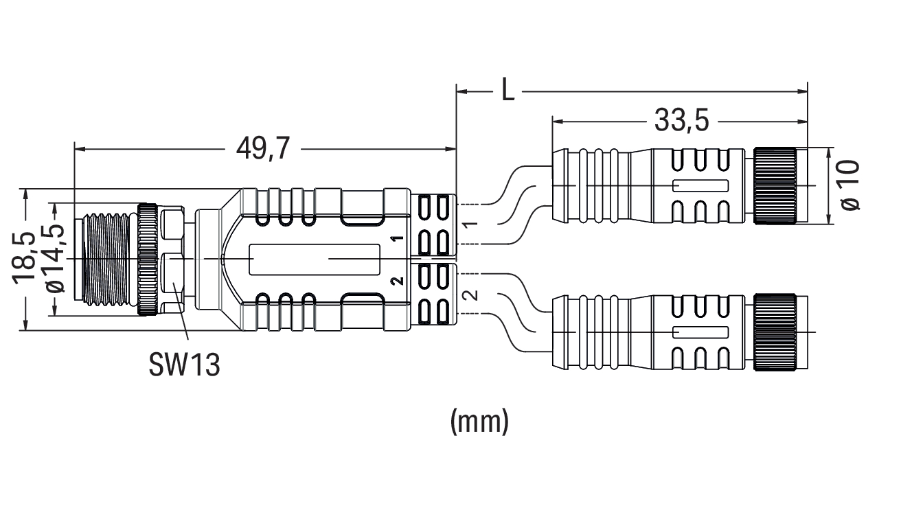 Przewód do czujników/elementów wykonawczych; 2xM8 gniazdo proste; M12 wtyk prosty; 4-bieg.; długość 0,3 m