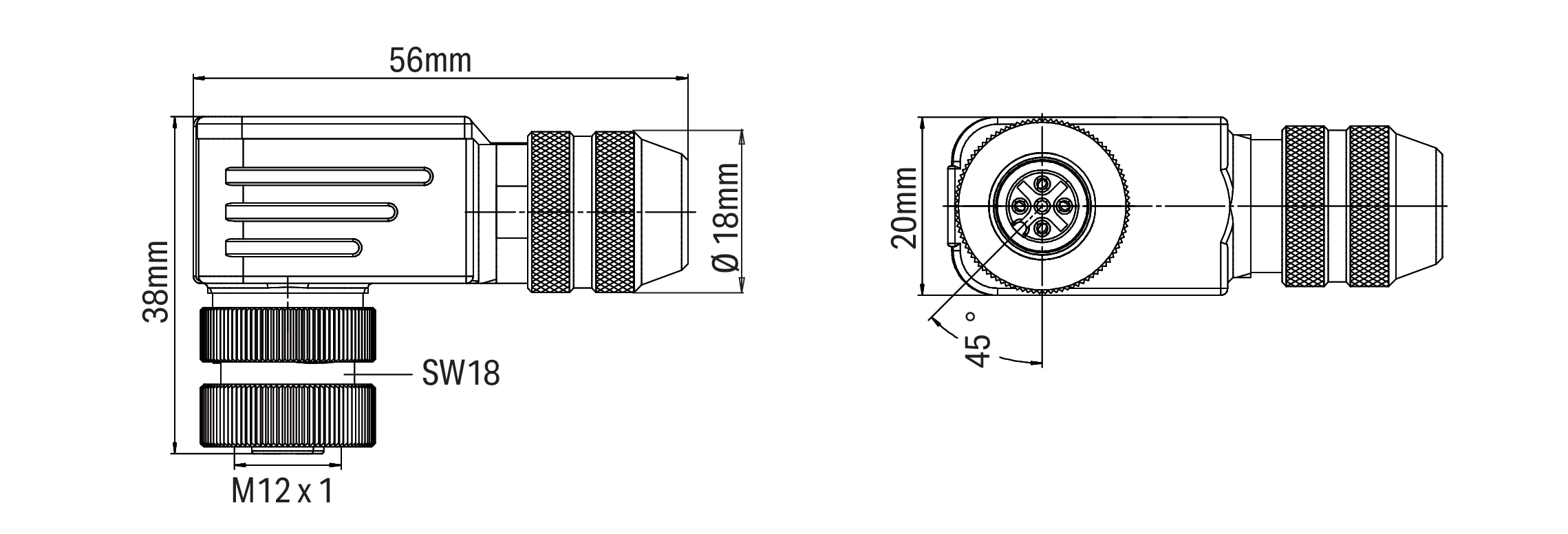 wielowtyk konfekcjonowany; 8-bieg.; M12 gniazdo kątowe; śruba