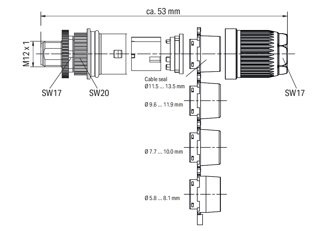 Dopasowane wtykowe złącze; 5-biegunowy; wtyk M12 prosty; technologia IDC