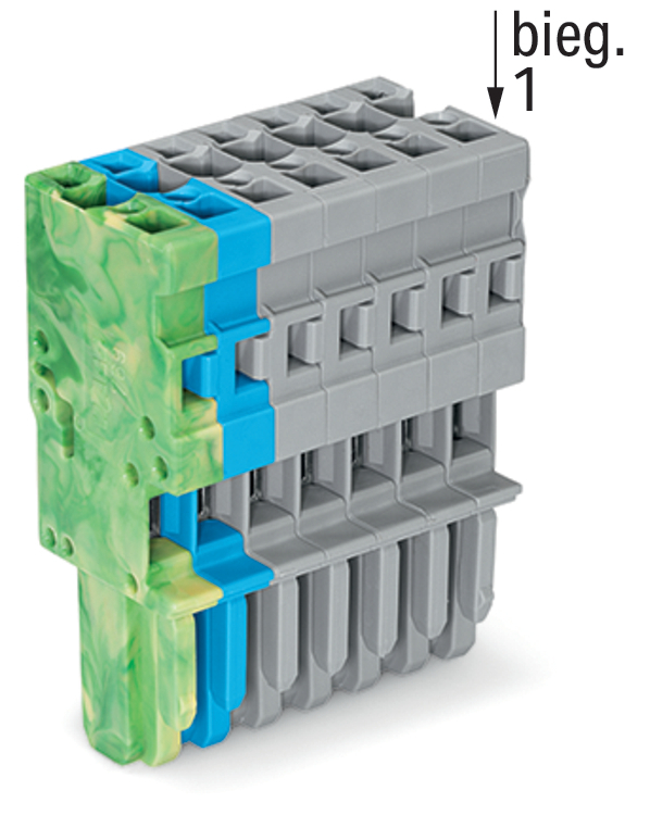 gniazdo 1-przewodowe; CAGE CLAMP®; 4 mm²; raster 5 mm; 7-bieg.; wypust kodujący; 4,00 mm²; szary/niebieski/żółto-zielony