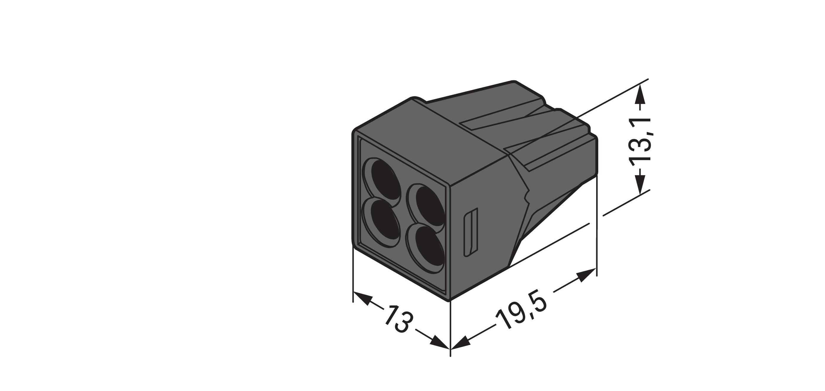 złączka instalacyjna do przewodów sztywnych; do przewodów jedno- i wielodrutowych; maks. 2,5 mm²; 4-przew.; czarny; kolor pokrywy: czarny; temperatura otoczenia maks. 105°C; 2,50 mm²; czarny