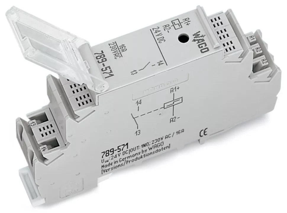 Moduł przekaźnika implusowego, nominalne napięcie wejściowe 230 V AC, 1 zestyk zwierny, graniczny prąd stały 16 A, sygnalizacja statusu czerwony, szerokość 18 mm, 2,50 mm², szary