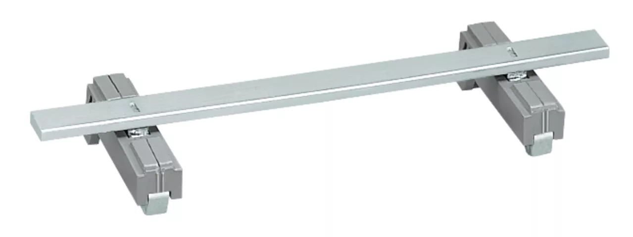 szyna z 2 przewodzącymi stopkami; równoległa do szyny montażowej; długość 125 mm; Cu 10 mm x 3 mm; szary
