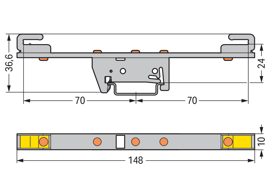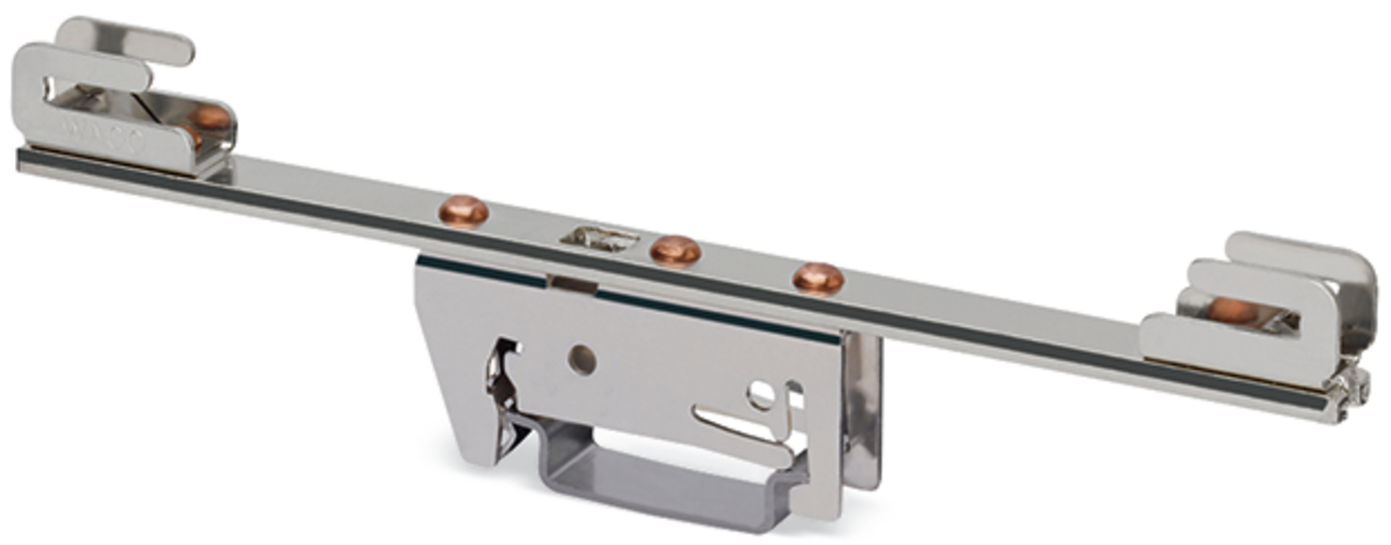 wspornik szyny zbiorczej; do szyn zbiorczych Cu 10 mm x 3 mm; dwustronny prosty; do montażu zatrzaskowego na TS 35; srebrny