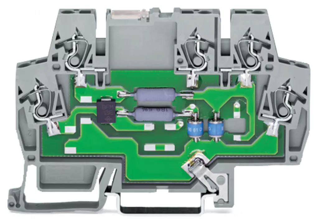 Moduł ochronny przeciwprzepięciowy do techniki syg., napięcie nominalne: 48 V DC, do 2 torów syg. ze wspólnym odprow., do interfejsów symetrycznych, 2-stop., szerokość 6 mm, 2,50 mm²