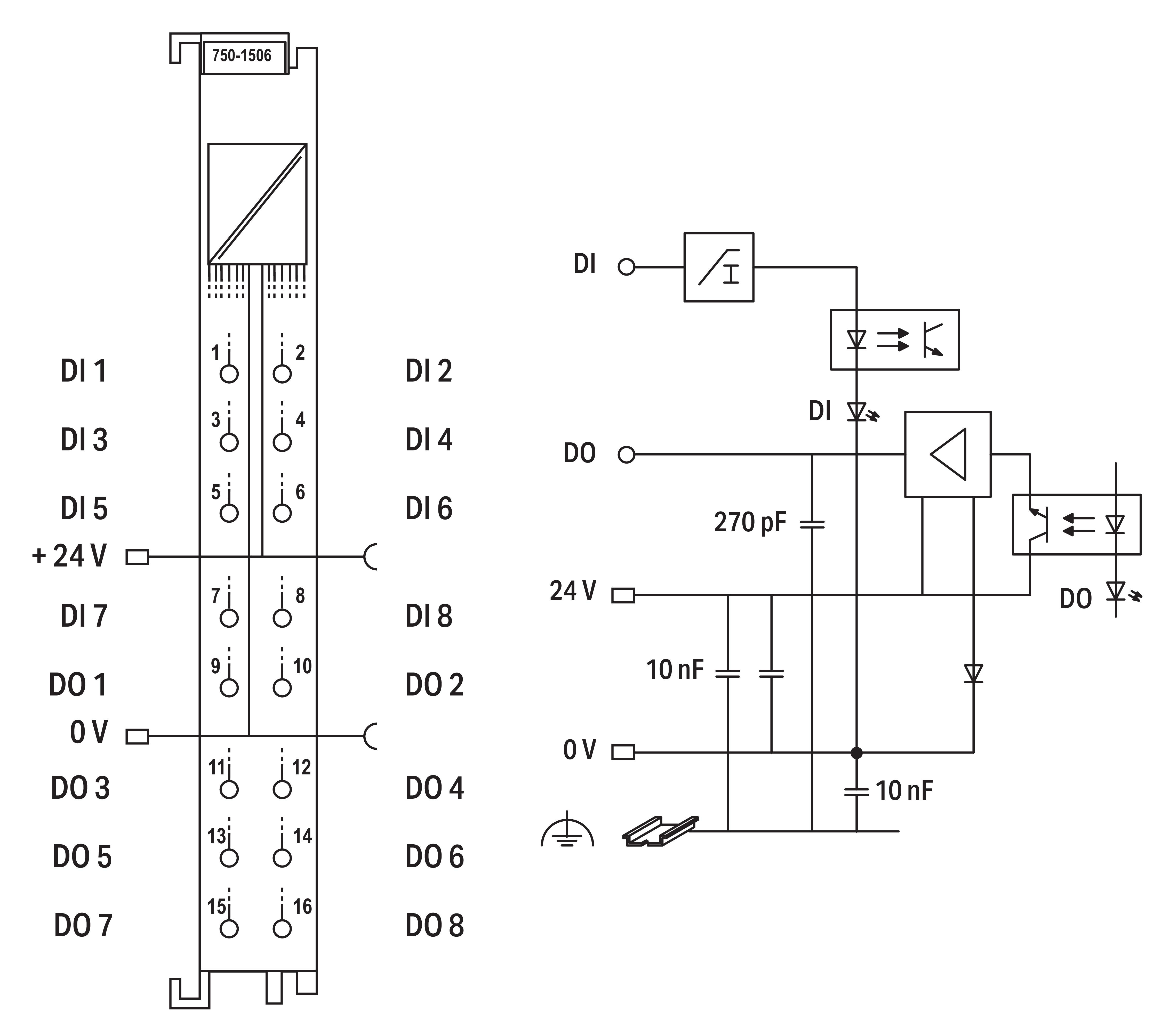 8-kanałowe wejście/wyjście dwustanowe 24 VDC 0,5A 750-1506