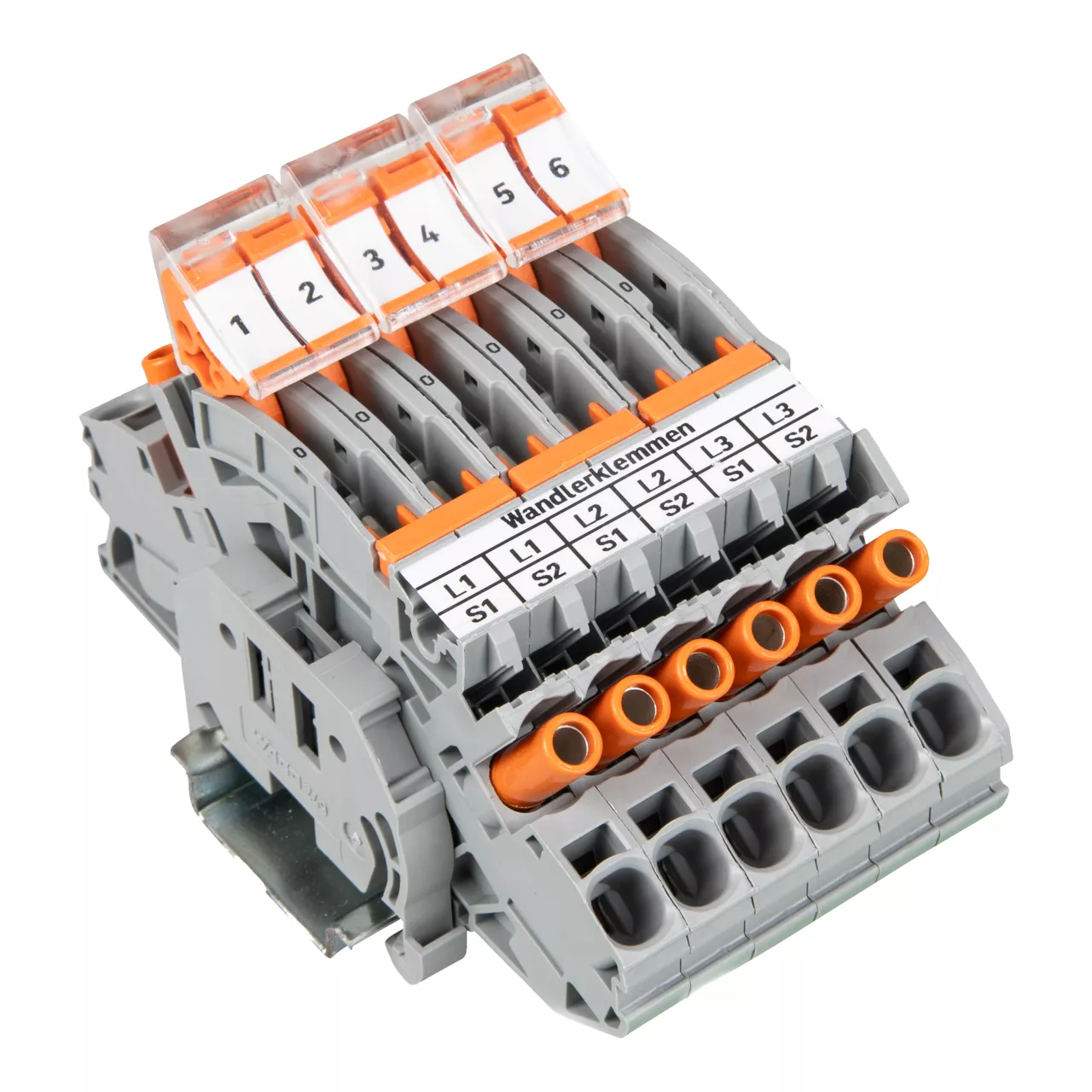 blok zaciskowy do przekł. prądowych; do 3 przekładników prądowych; 6,00 mm²; szary