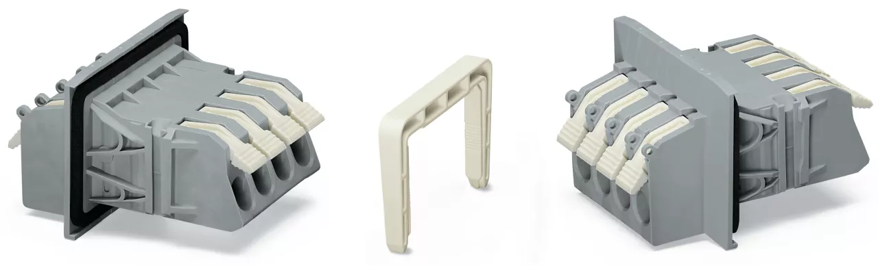 złącze przepustowe; dźwignia; grubość blachy 3 mm; 16 mm²; raster 11,5 mm; 4-bieg.; CAGE CLAMP®; 16,00 mm²; szary