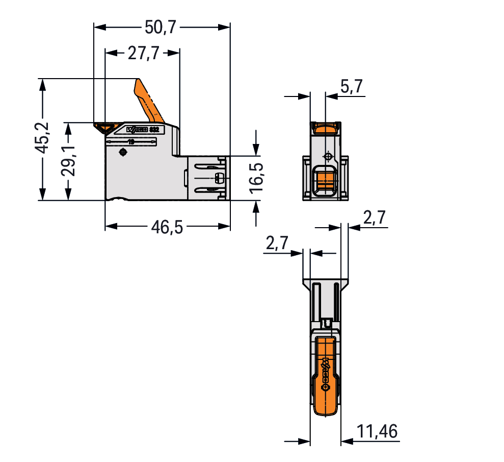 Wtyk 1-przewodowy dźwignia Push-in CAGE CLAMP®, jasnoszary