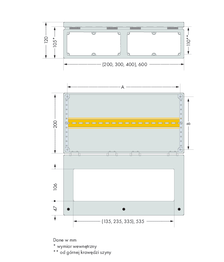 obudowa systemowa IP65; blacha stalowa (RAL 7035); S x W x G (600x120x200 mm); bez płyty przepustowej