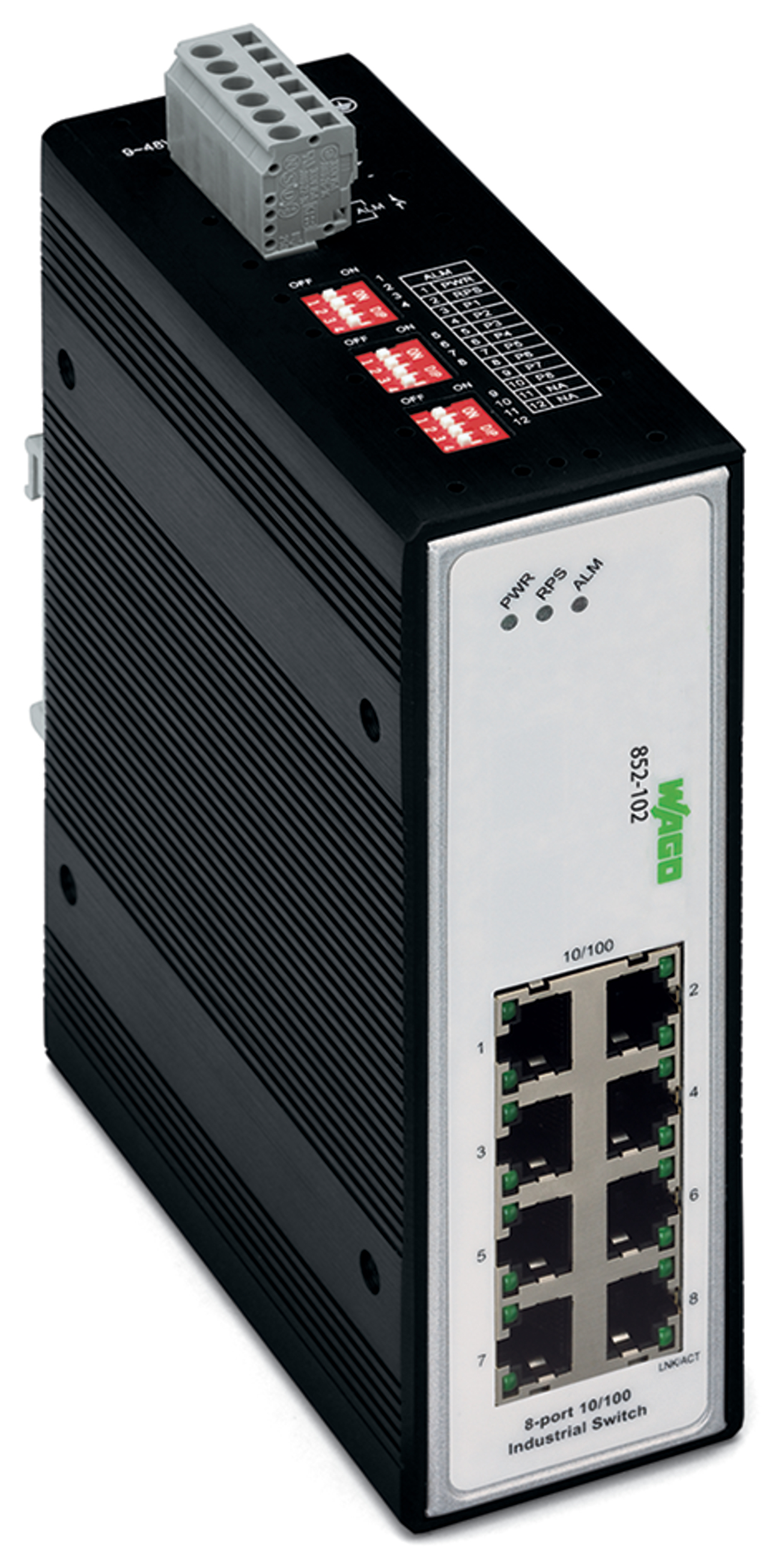 switch przemysłowy; 8 portów 100Base-TX; czarny