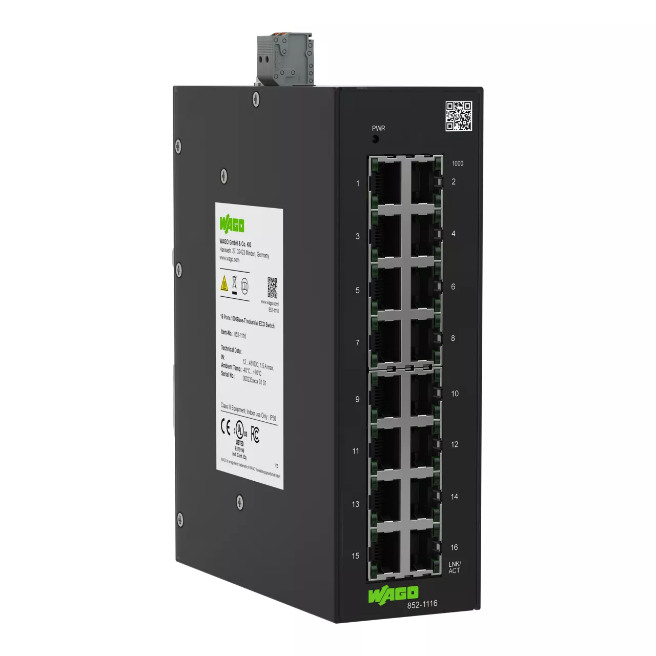 switch przemysłowy ECO; 16 portów 1000 Base-T; rozszerzony zakres temperatury; czarny metaliczny