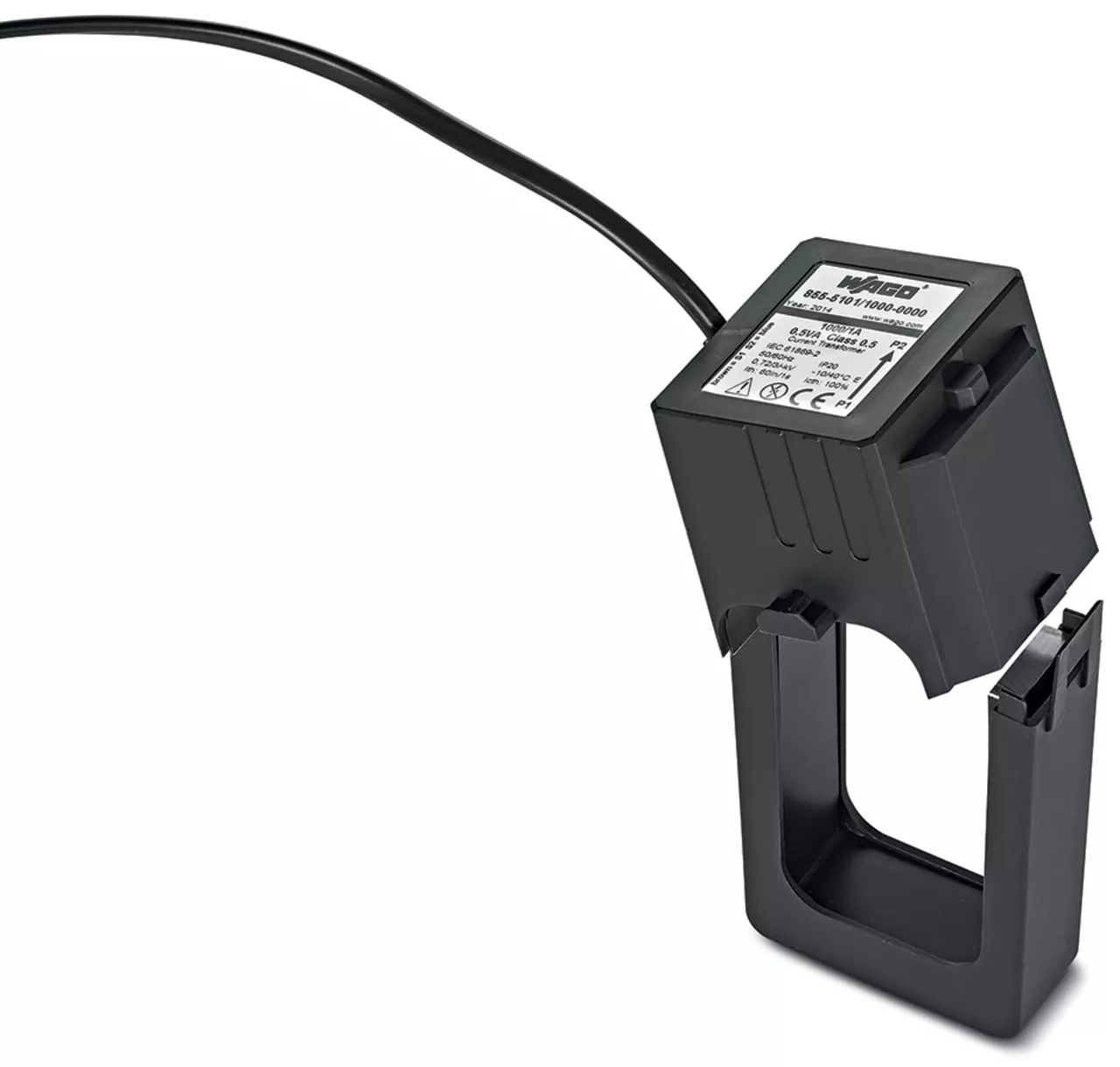 Przekładnik prądowy z dzielonym rdzeniem; znamionowy prąd pierwotny 500 A; znamionowy prąd wtórny 1 A; moc znamionowa 0,5 VA; klasa dokładności 0,5