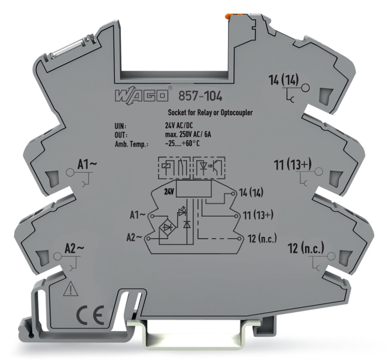 podstawka przekaźnika; znamionowe napięcie wejściowe 24 V AC/DC; do przekaźników bazowych, 5 mm; sygnalizacja statusu żółta