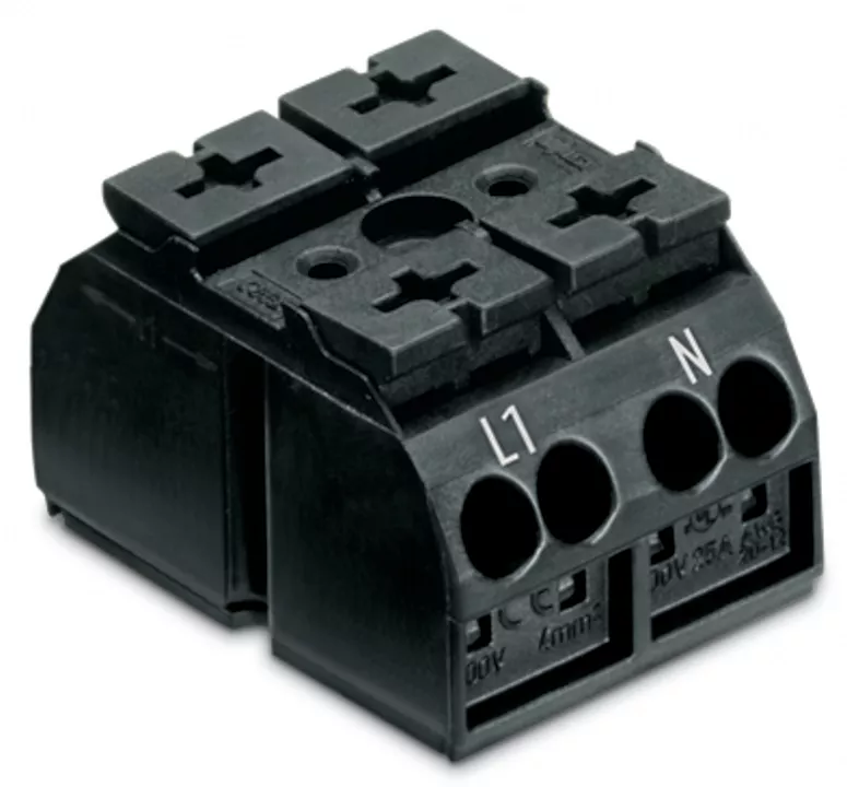 blok zasilający 4-przewodowy; do zastosowań Ex e II; bez styku PE; L1-N; 2-bieg.; 1 stopka zatrzaskowa na biegun; 4 mm²; 4,00 mm²; czarny