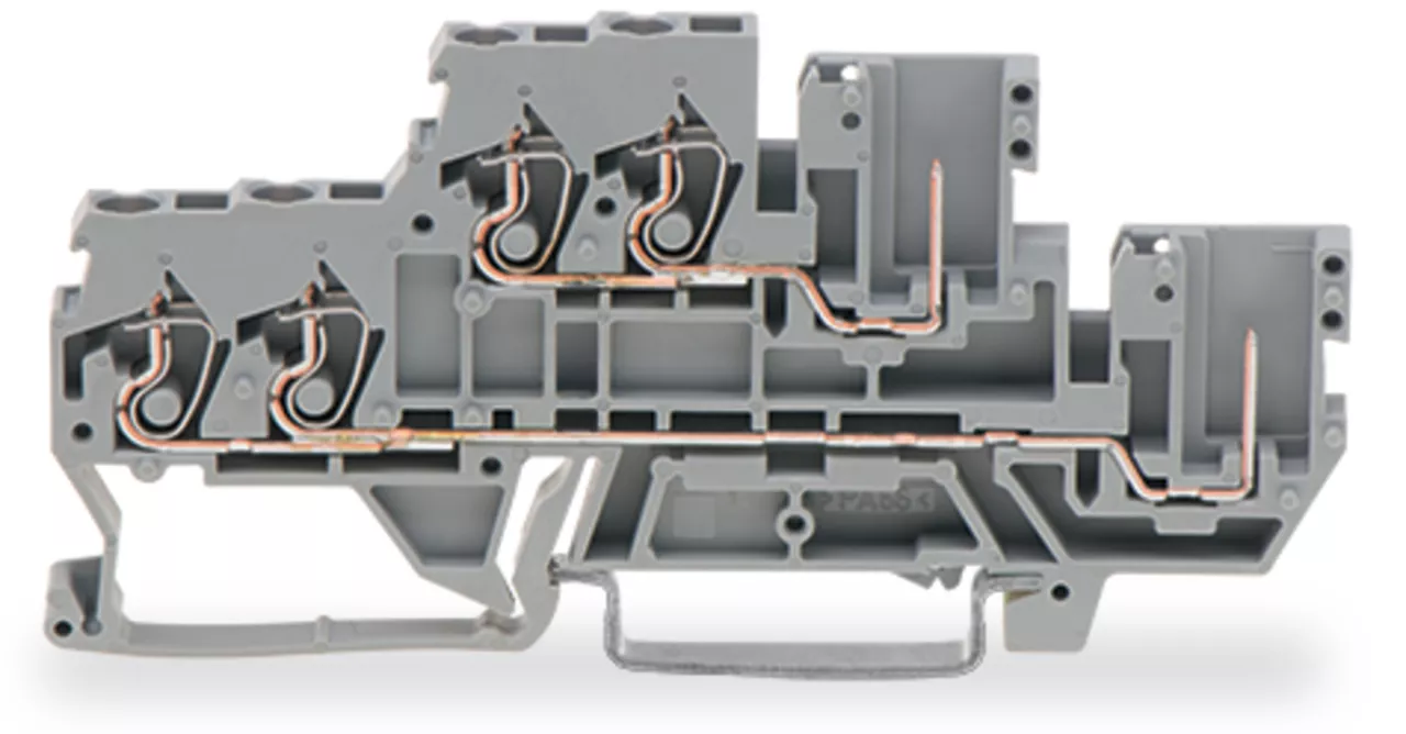 złączka bazowa 2-przewodowa/1-pinowa 2-piętrowa; złączka przelotowa 2-przewodowa/1-pinowa; 2,5 mm²; L/L; na szynę TS 35 x 15 i 35 x 7,5; CAGE CLAMP®; 2,50 mm²; szary