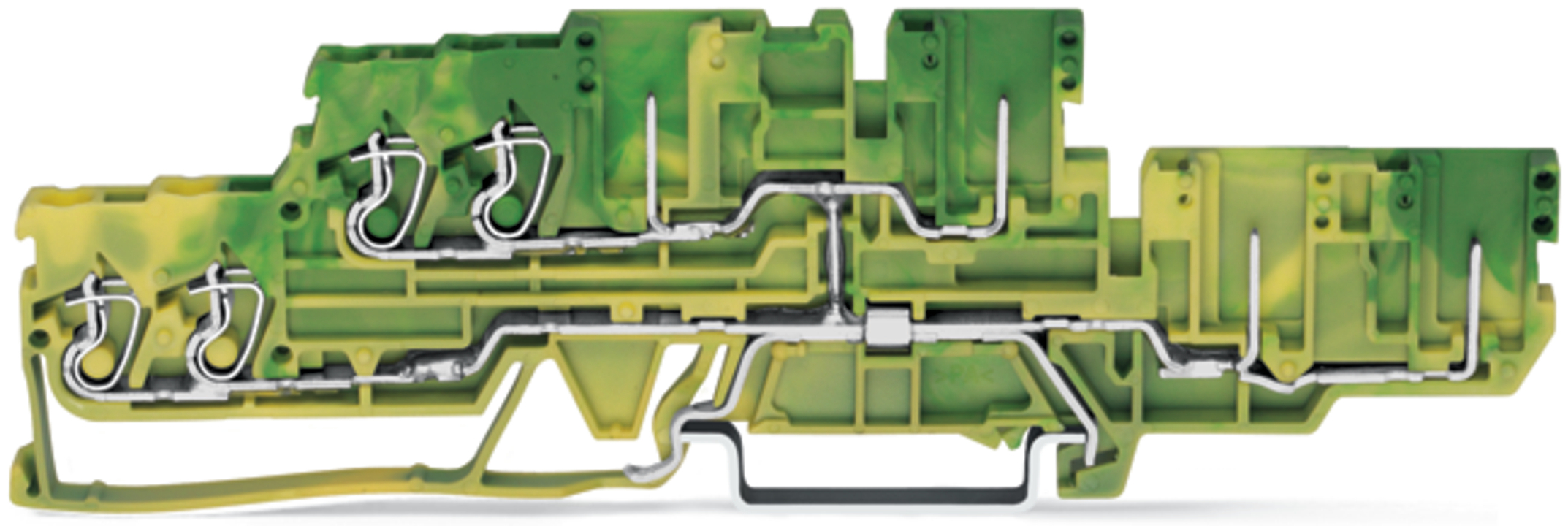 zł. bazowa 4-przew./4-pinowa 2-piętrowa; złączka PE 4-przewodowa/4-pinowa; 2,5 mm²; PE; z mostkowaniem wewnętrznym; na szynę TS 35 x 15 i 35 x 7,5; CAGE CLAMP®; 2,50 mm²; żółto-zielony
