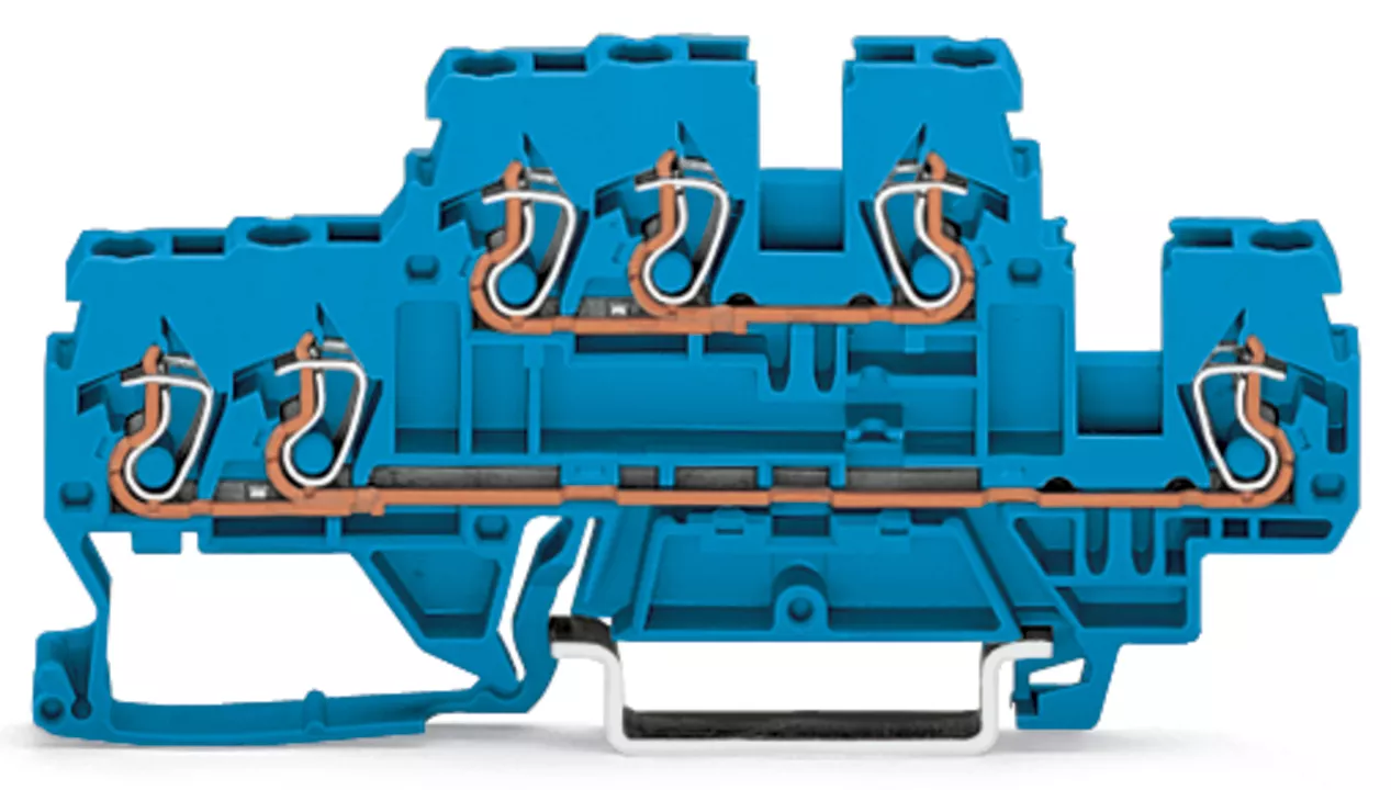 złączka 3-przewodowa 2-piętrowa; złączka przelotowa/przelotowa; N/N; do zastosowań Ex i; na szynę TS 35 x 15 i 35 x 7,5; 2,5 mm²; CAGE CLAMP®; 2,50 mm²; niebieski