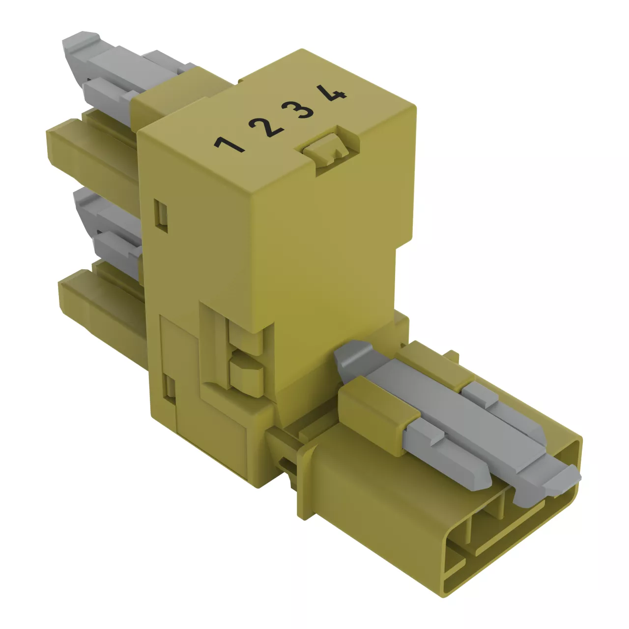 rozgałęźniki typu h; 4-bieg.; kodowanie B; 1 wejście; 2 wyjścia; odejścia jednostronne; 3 zaczepy ryglujące; do połączeń swobodnych; jasnozielony