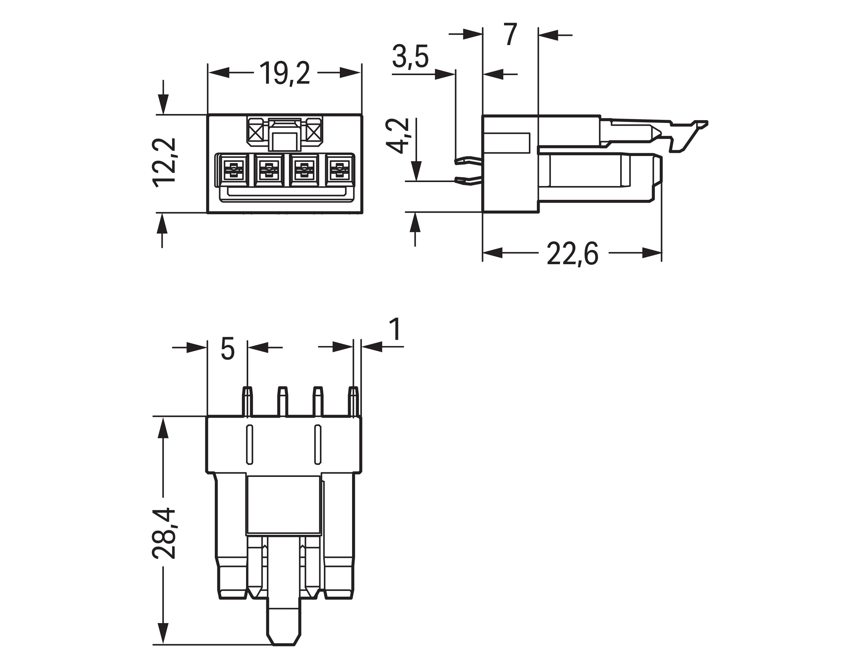 gniazdo do PCB; konstrukcja prosta; 4-bieg.; kodowanie A; czarny