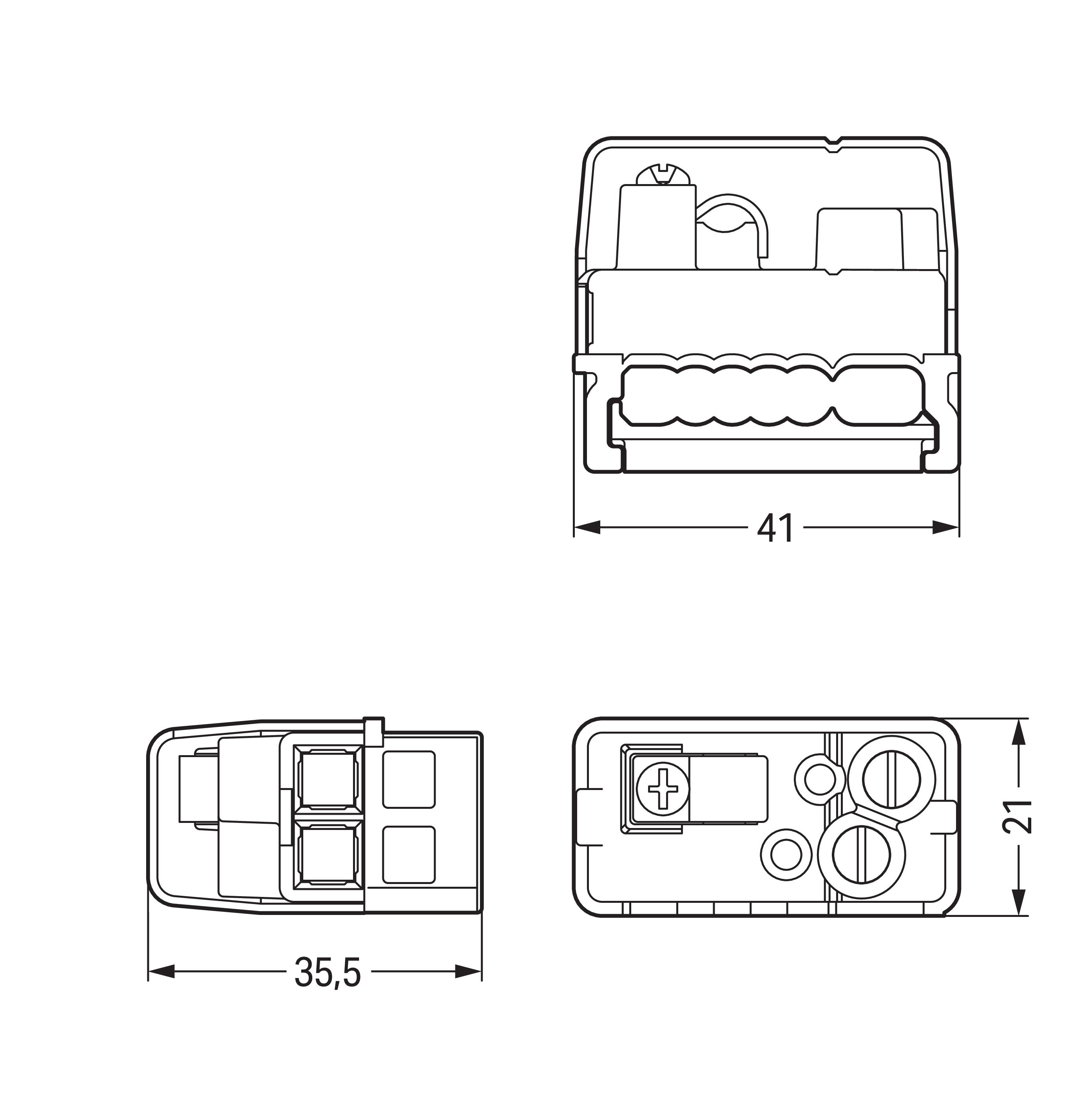 moduł zasilający; do przewodu płaskiego; 5 x 2,5 mm² + 2 x 1,5 mm²; 2-bieg.; szary