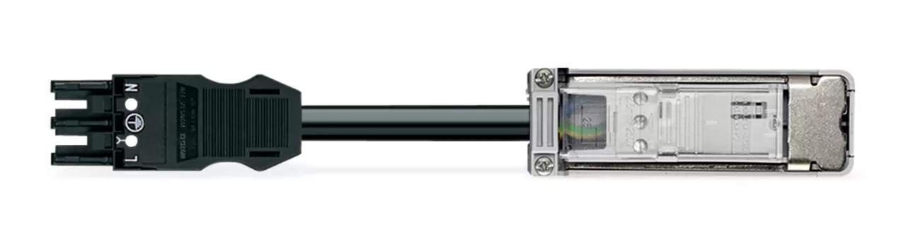 moduł odejściowy; 3 x 2,5 mm²; 3-bieg.; kodowanie A; z przewodem; z obudową odciążającą przewody; czarny