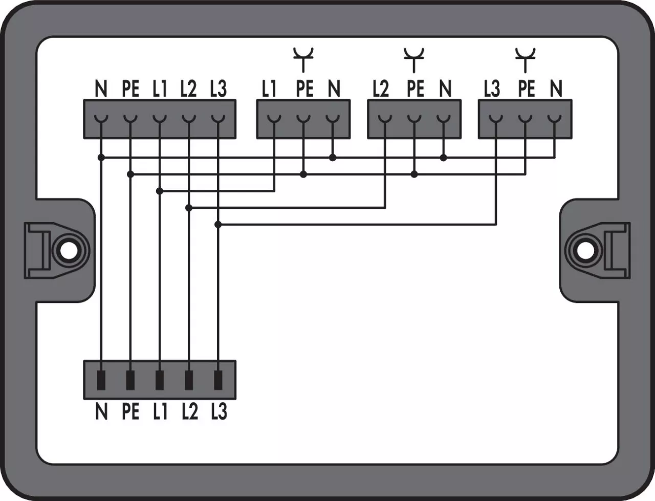 Skrzynka rozdzielcza; trójfazowy na jednofazowy (400V/230V), czarny