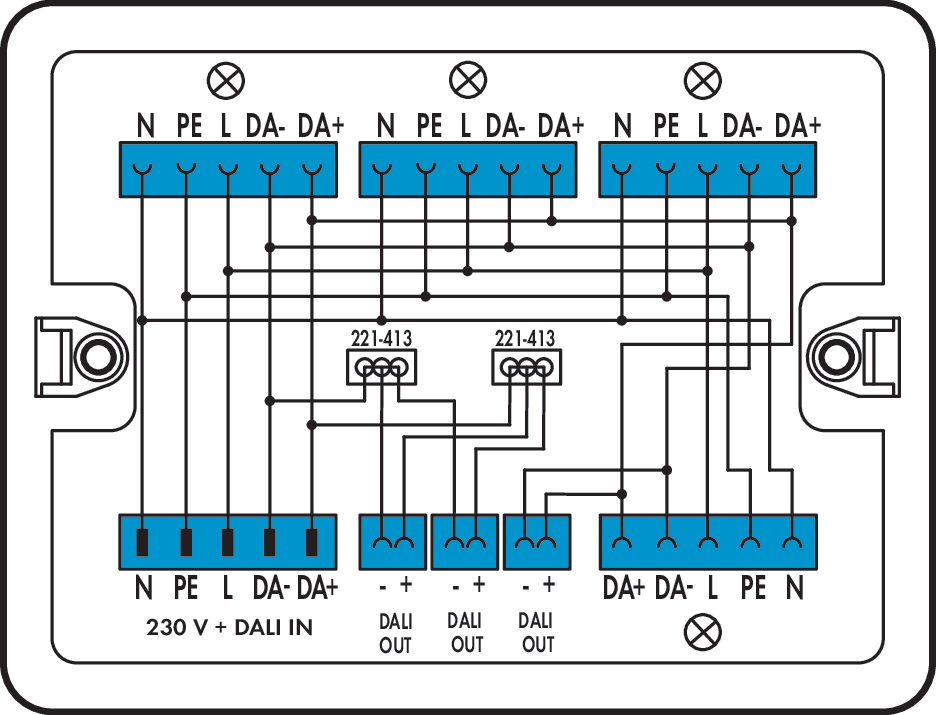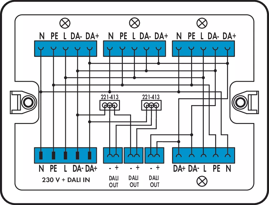 skrzynka rozdzielcza; 230 V + DALI; 1 wejście; 7 wyjść; kodowanie I; MINI, MIDI; biały