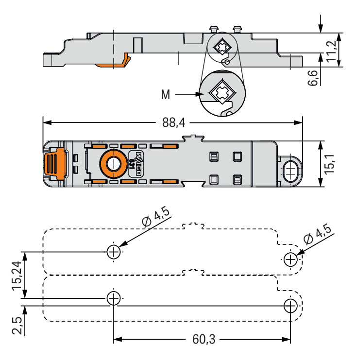 Mounting adapter; for DIN-35 rail/panel mounting; fixed on DIN-rail 35; Pin spacing 7.62 mm; light gray