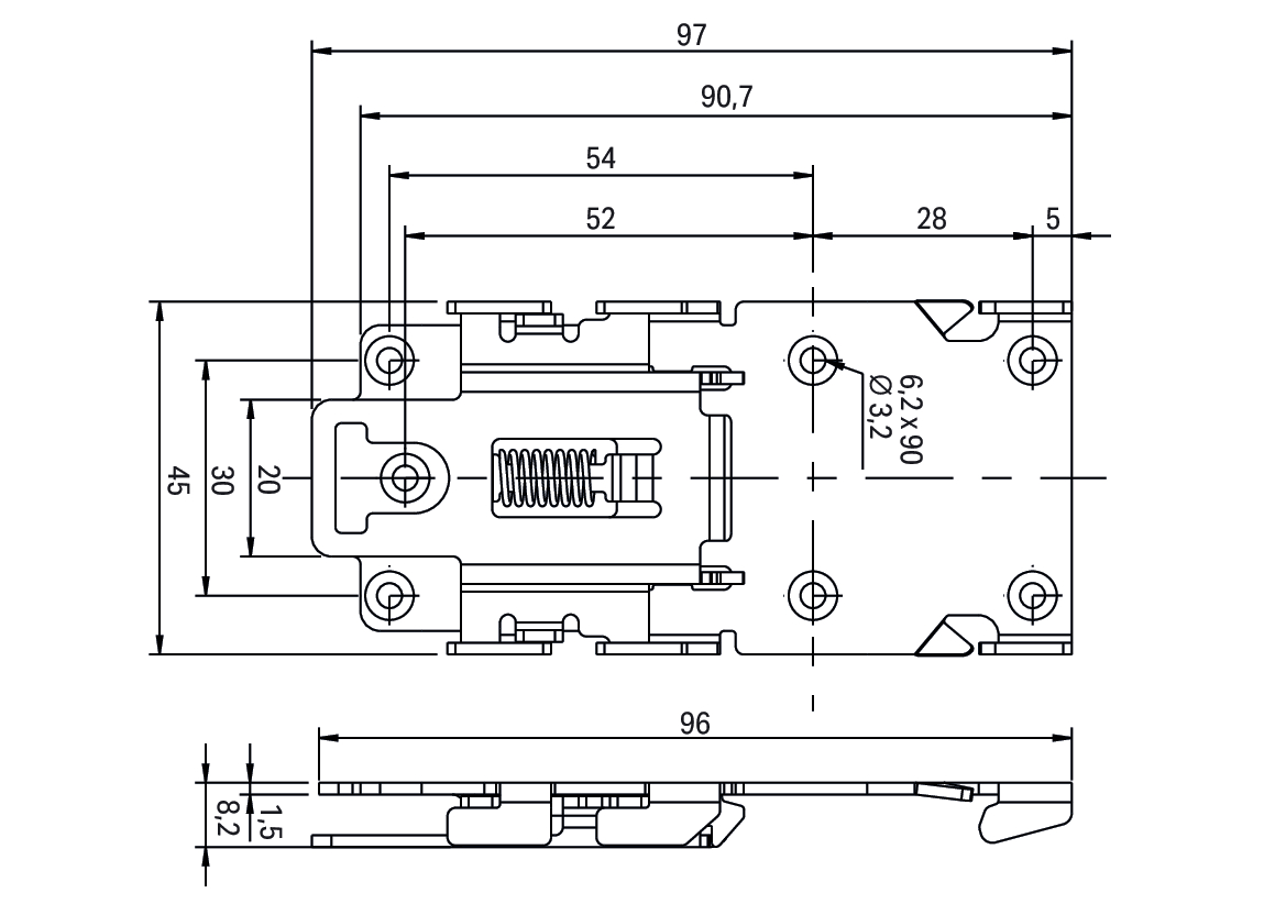 adapter montażowy; grubość 1,5 mm; stal węglowa; do montażu na szynie DIN 35; 45 mm