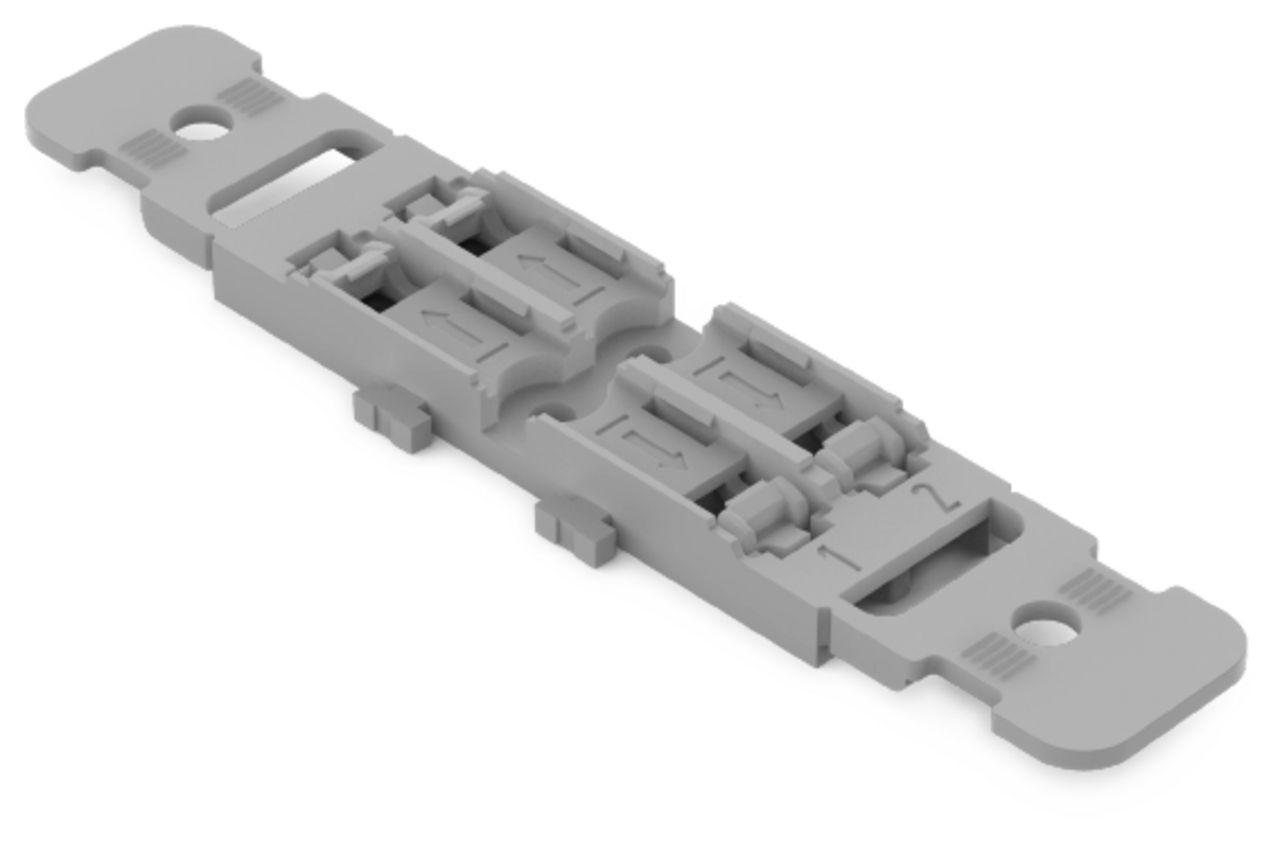 adapter montaż. z odciążeniem przewodów; 2-torowy; do przelot. złączki instal. z dźwignią; do mocowania śrubowego; szary