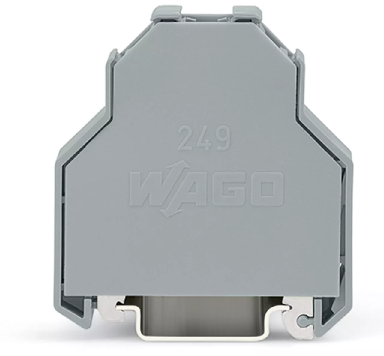 Bezśrubowa blokada końcowa szer. 14 mm na szynę TS 35 x 15 i 35 x 7,5, szara 249-197