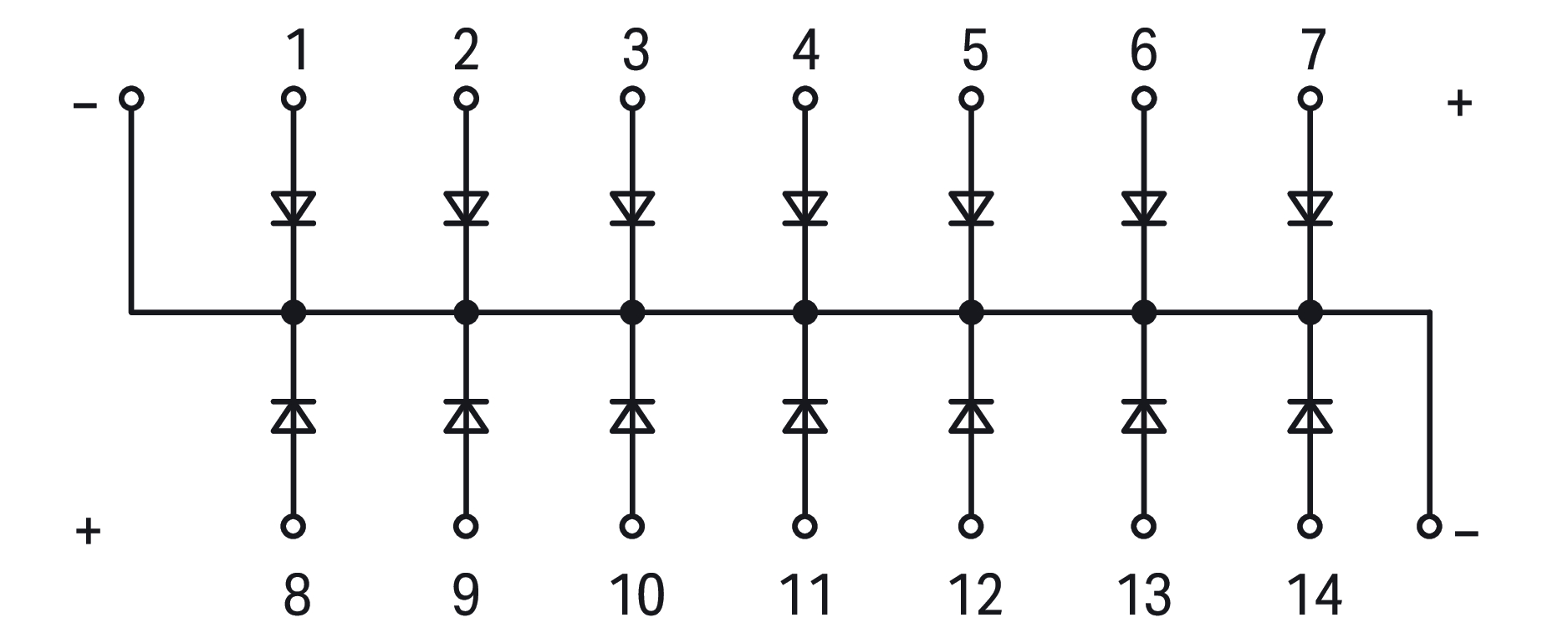moduł z diodą; z 14 szt.; dioda 1 N 4007; ze wspólną katodą; 2,50 mm²