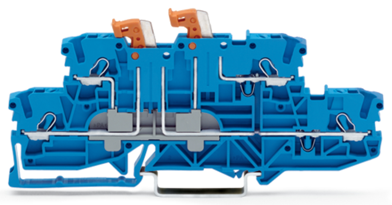 złączka rozłączalna podwójna 2-piętrowa; z 2 nożami rozłączającymi; do zastosowań Ex i; na szynę TS 35 x 15 i 35 x 7,5; 2,5 mm²; Push-in CAGE CLAMP®; 2,50 mm²; niebieski
