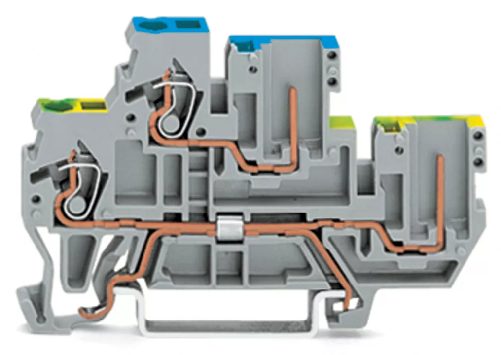 złączka bazowa 2-piętrowa 1-przewodowa/1-pinowa; złączka PE/przelotowa; 2,5 mm²; PE/L; na szynę TS 35 x 15 i 35 x 7,5; CAGE CLAMP®; 2,50 mm²; szary
