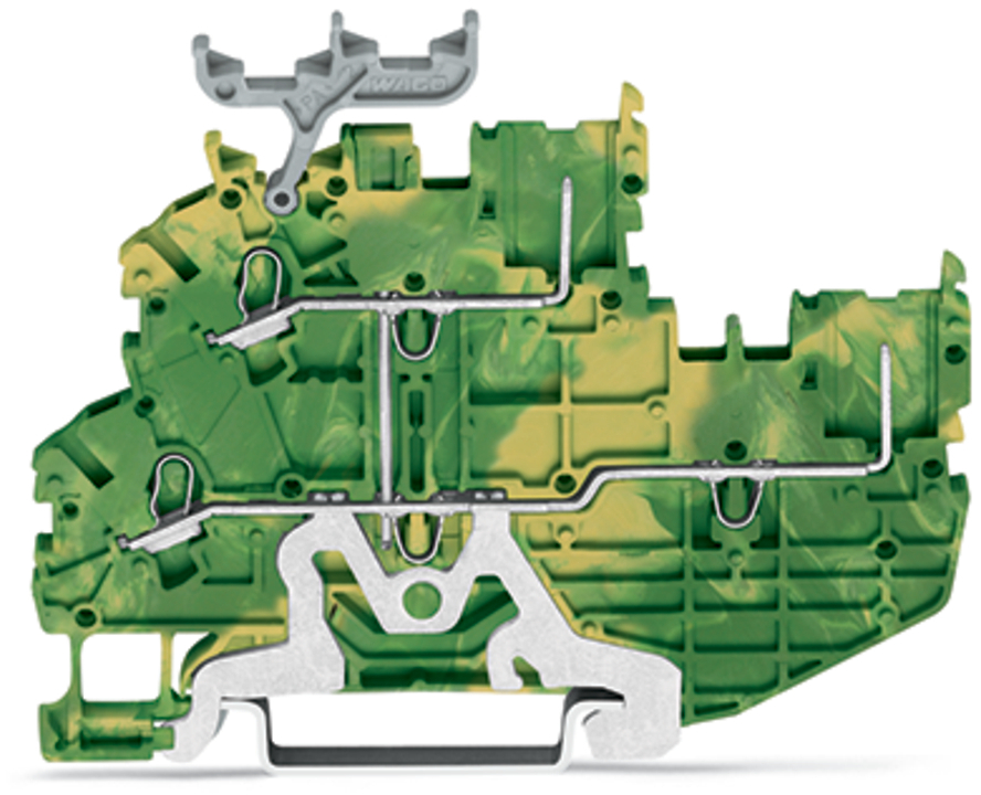 złączka bazowa 2-piętrowa 2-przewodowa/2-pinowa; złączka PE 2-przewodowa/2-pinowa; PE; z mostkowaniem wewnętrznym; na szynę TS 35 x 15 i 35 x 7,5; Push-in CAGE CLAMP®; 1,00 mm²; żółto-zielony