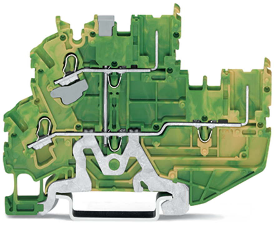 złączka bazowa 2-piętrowa 2-przewodowa/2-pinowa; złączka PE 2-przewodowa/2-pinowa; 2,5 mm²; PE; z mostkowaniem wewnętrznym; na szynę TS 35 x 15 i 35 x 7,5; Push-in CAGE CLAMP®; 2,50 mm²; żółto-zielony