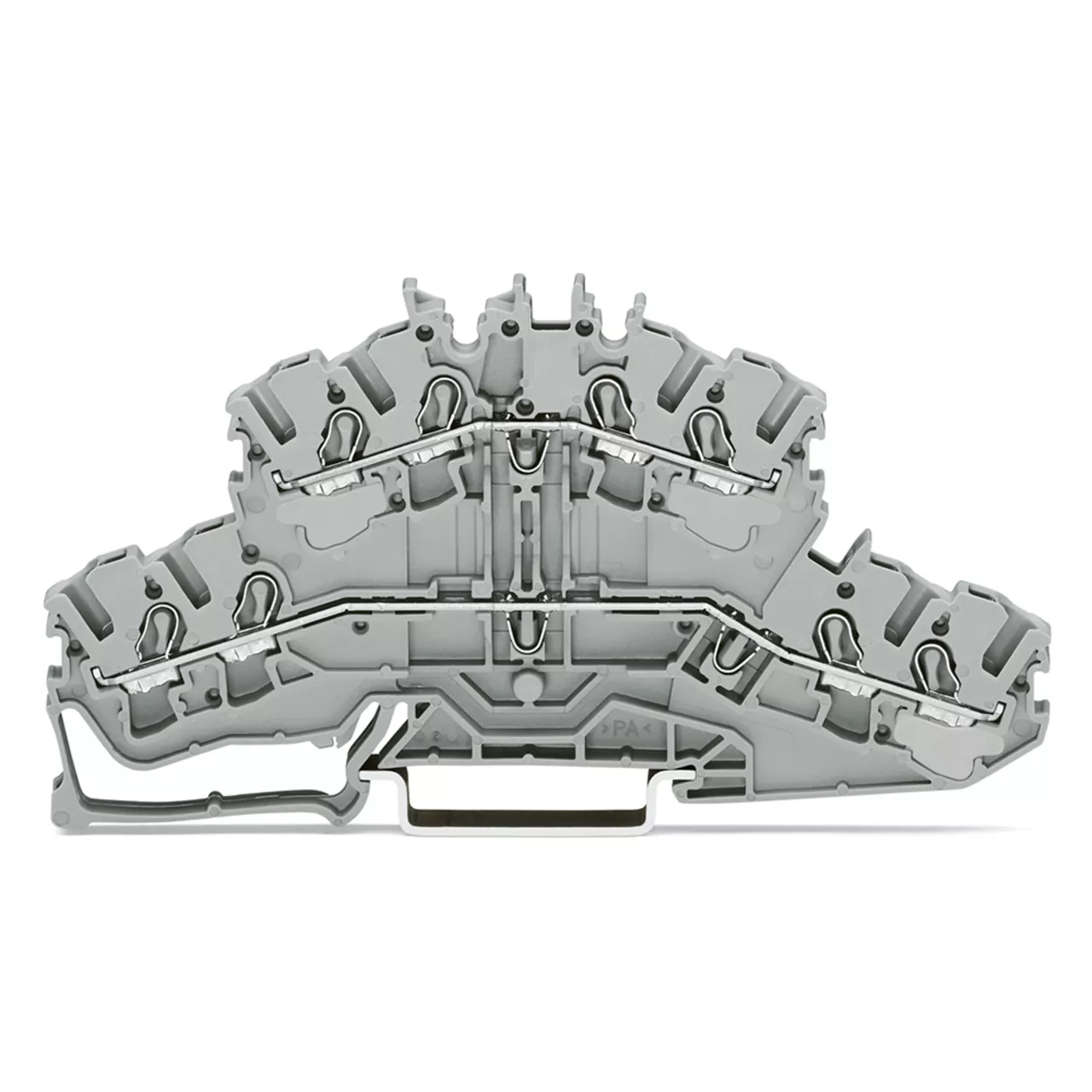 złączka 2-piętrowa 4-przewodowa; złączka przelotowa/przelotowa; L/L; bez podstawki oznacznika; na szynę TS 35 x 15 i 35 x 7,5; 2,5 mm²; Push-in CAGE CLAMP®; 2,50 mm²; szary