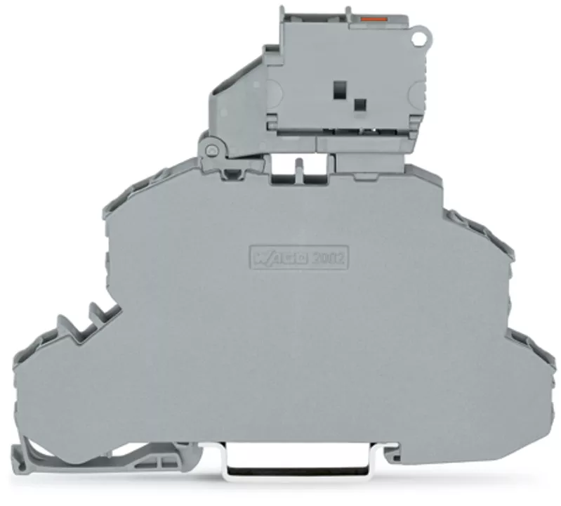 złączka bezpiecznikowa 2-piętrowa; z uchylną podstawką bezpiecznika; złączka przelotowa/bezpiecznikowa; do wkładki bezpiecznikowej aparatowej 5 x 20 mm; z sygnalizacją przepalenia wkładki przez LED; 12 - 30 V; na szynę TS 35 x 15 i 35 x 7,5; 2,5 mm²; Push-in CAGE CLAMP®; 2,50 mm²; szary