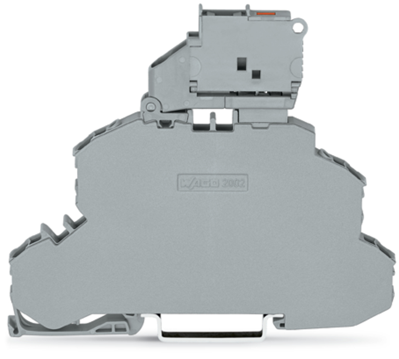 złączka bezpiecznikowa 2-piętrowa; z uchylną podstawką bezpiecznika; złączka przelotowa/bezpiecznikowa; do wkładki bezpiecznikowej aparatowej 5 x 20 mm; z sygnalizacją przepalenia wkładki przez LED; 30 - 65 V; na szynę TS 35 x 15 i 35 x 7,5; 2,5 mm²; Push-in CAGE CLAMP®; 2,50 mm²; szary