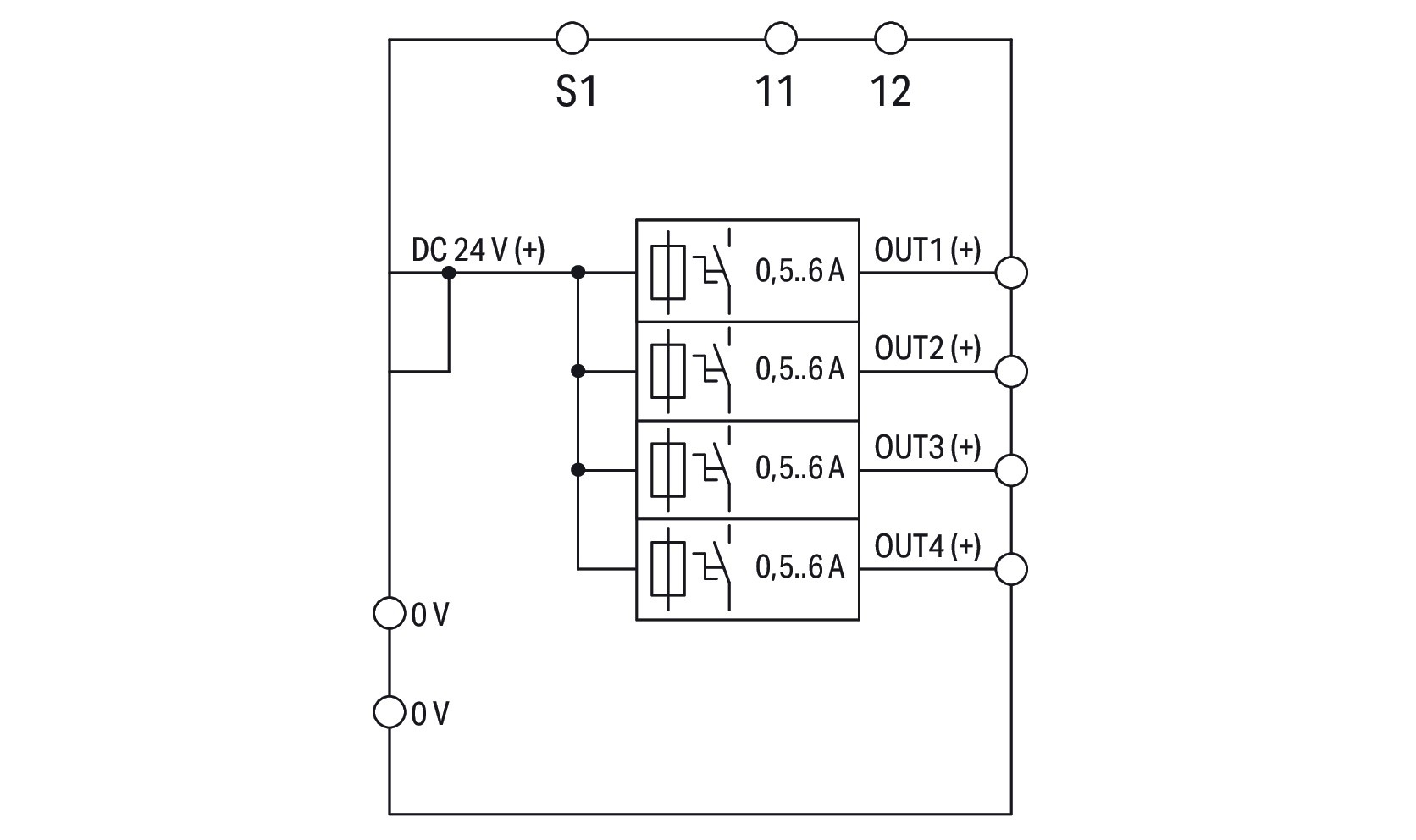 elektroniczny wyłącznik nadprądowy; 4-kanałowy; napięcie wejściowe 24 V DC; konfig. 0,5 … 6 A; aktywne ograniczenie prądu; zestyk sygnalizacyjny; konfiguracja specjalna