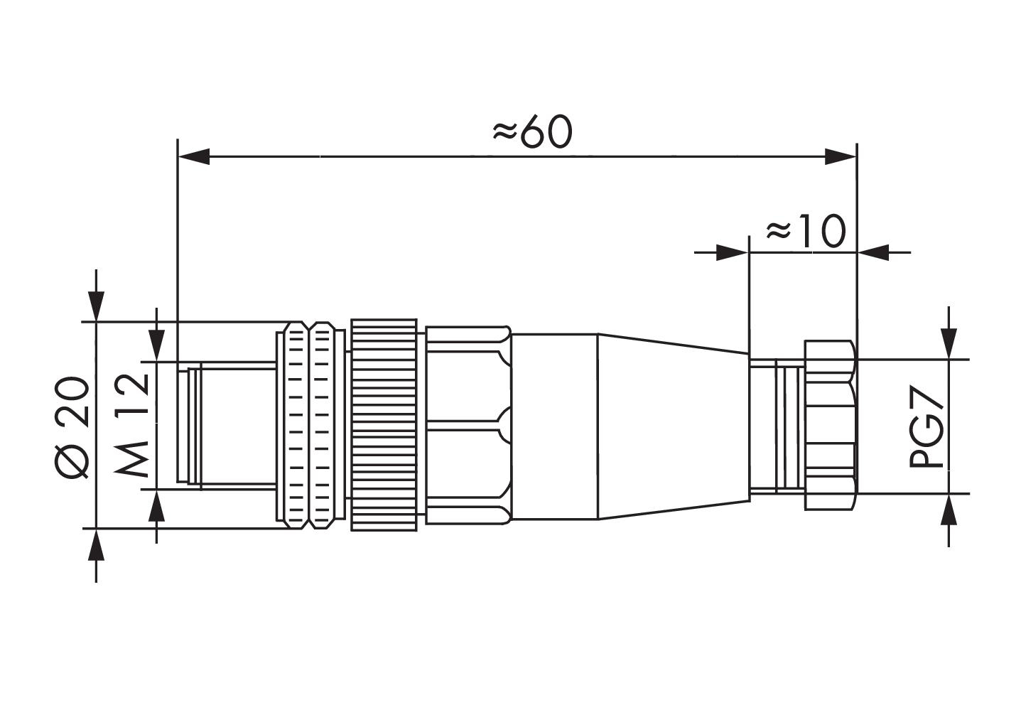 wielowtyk konfekcjonowany; 5-bieg.; M12 wtyk prosty kodowanie A; śruba