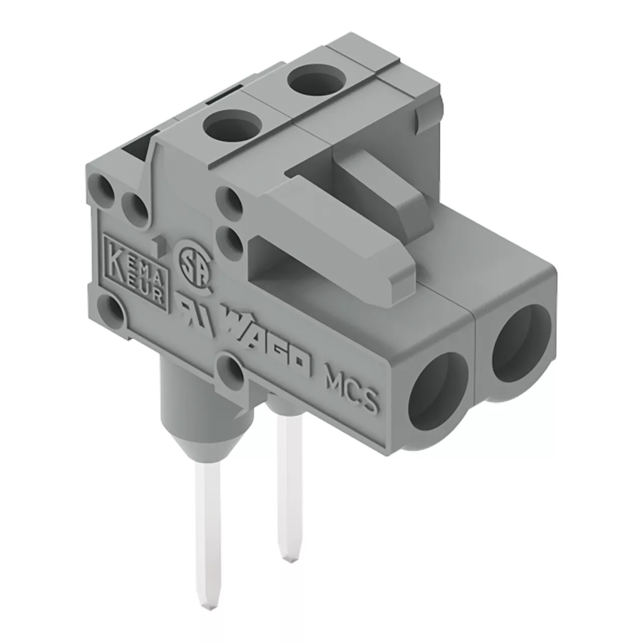 gniazdo do złączek listwowych; piny 0,6 x 1 mm; konstrukcja kątowa; raster 5 mm; 2-bieg.; szary
